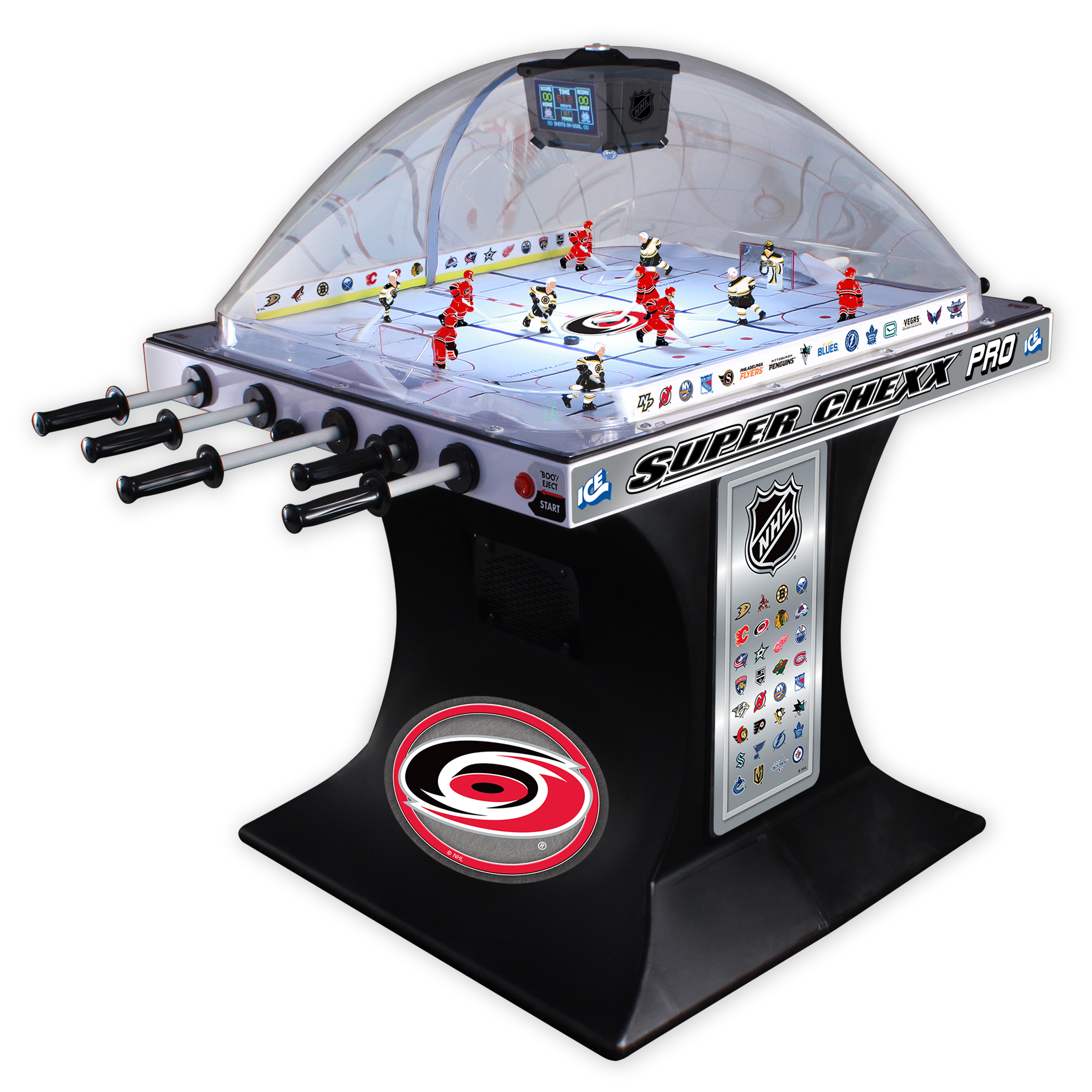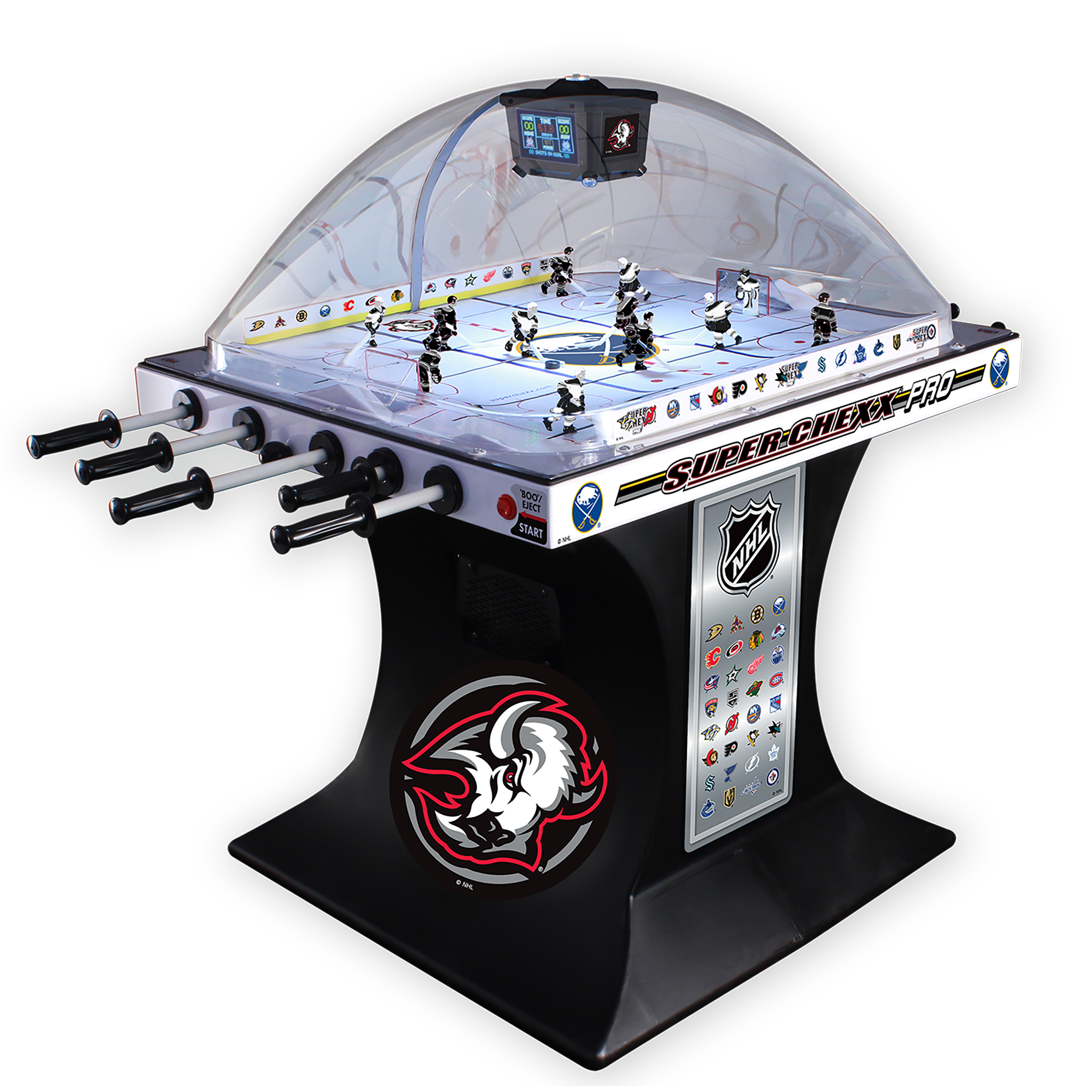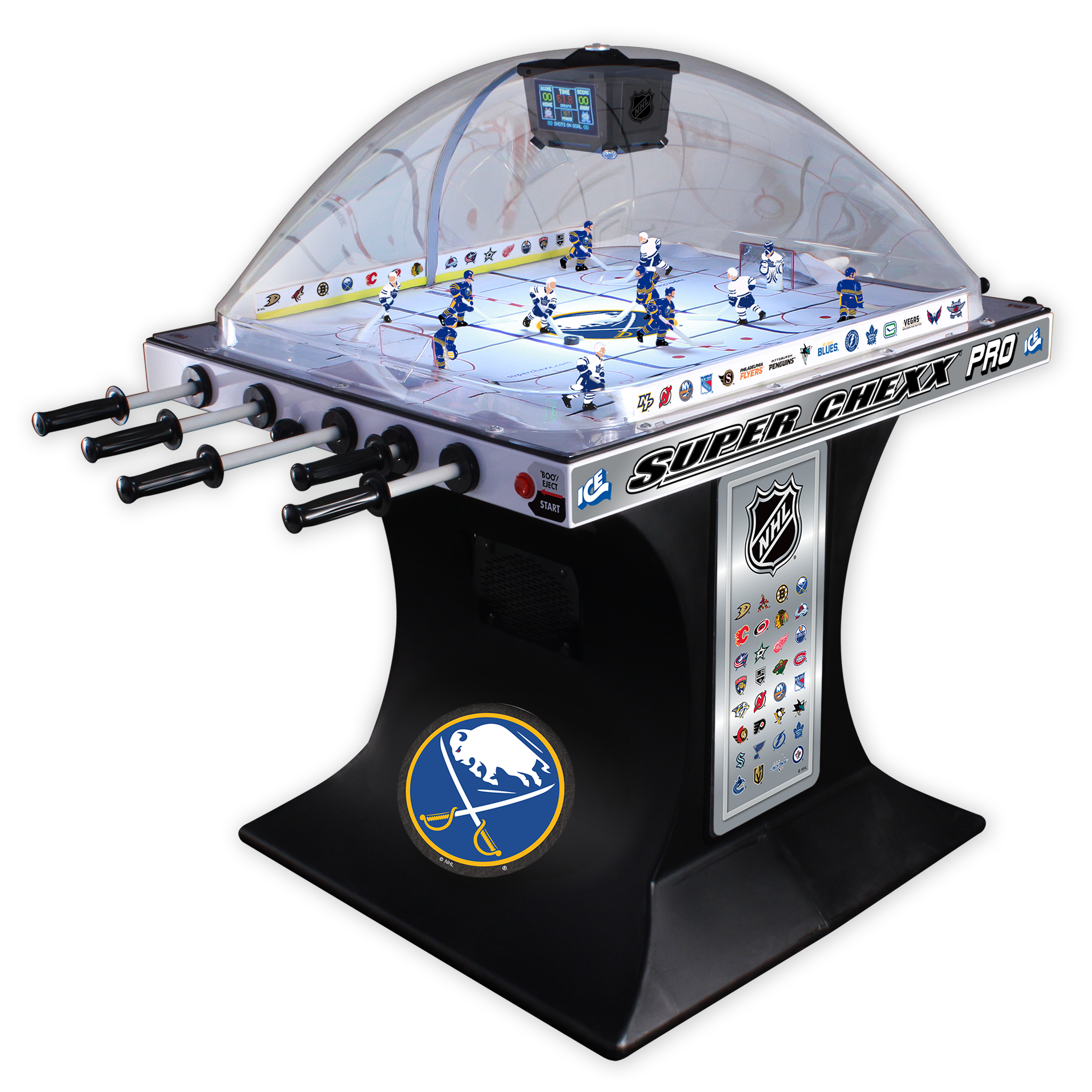 Choose from NHL®, USA Hockey and Hockey Canada Editions with 36 team jersey options to bring home the custom game you want to enjoy with family and friends. No other dome hockey brand offers the look and feel of a custom built Super Chexx.