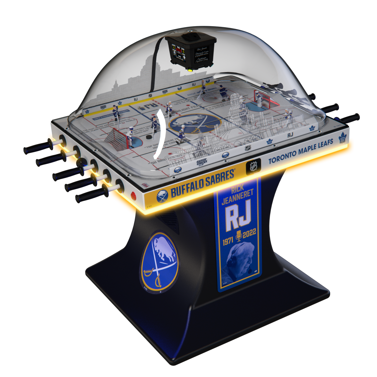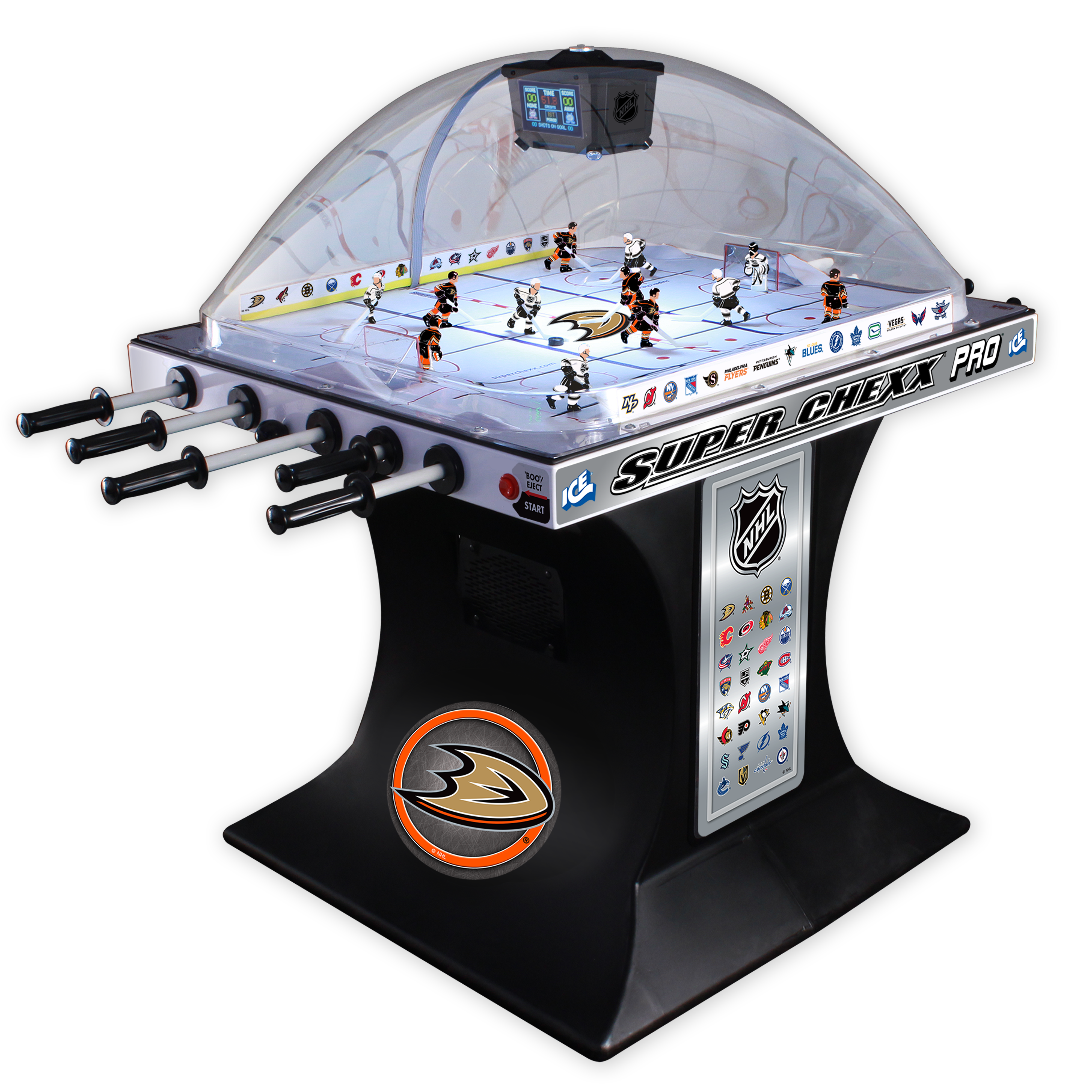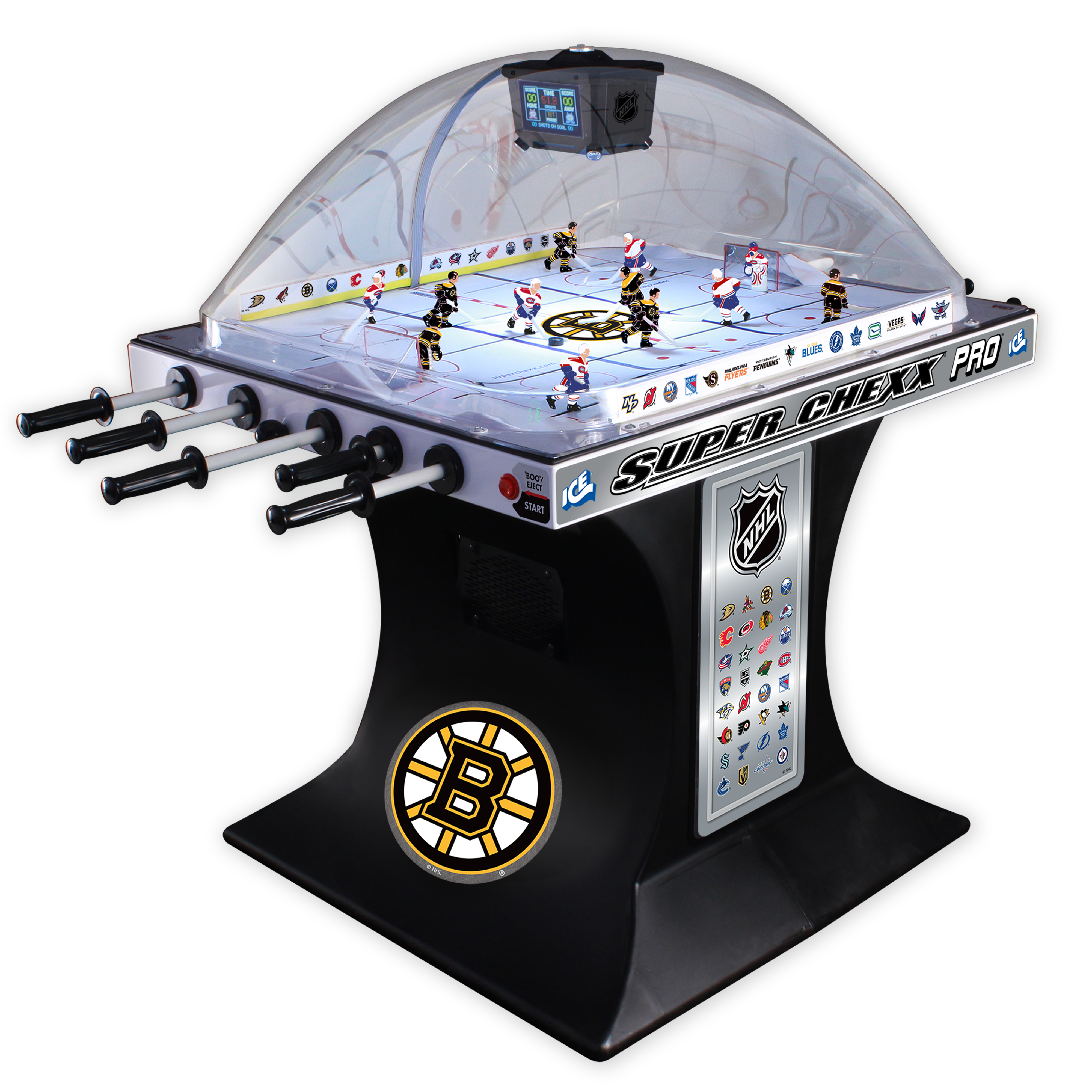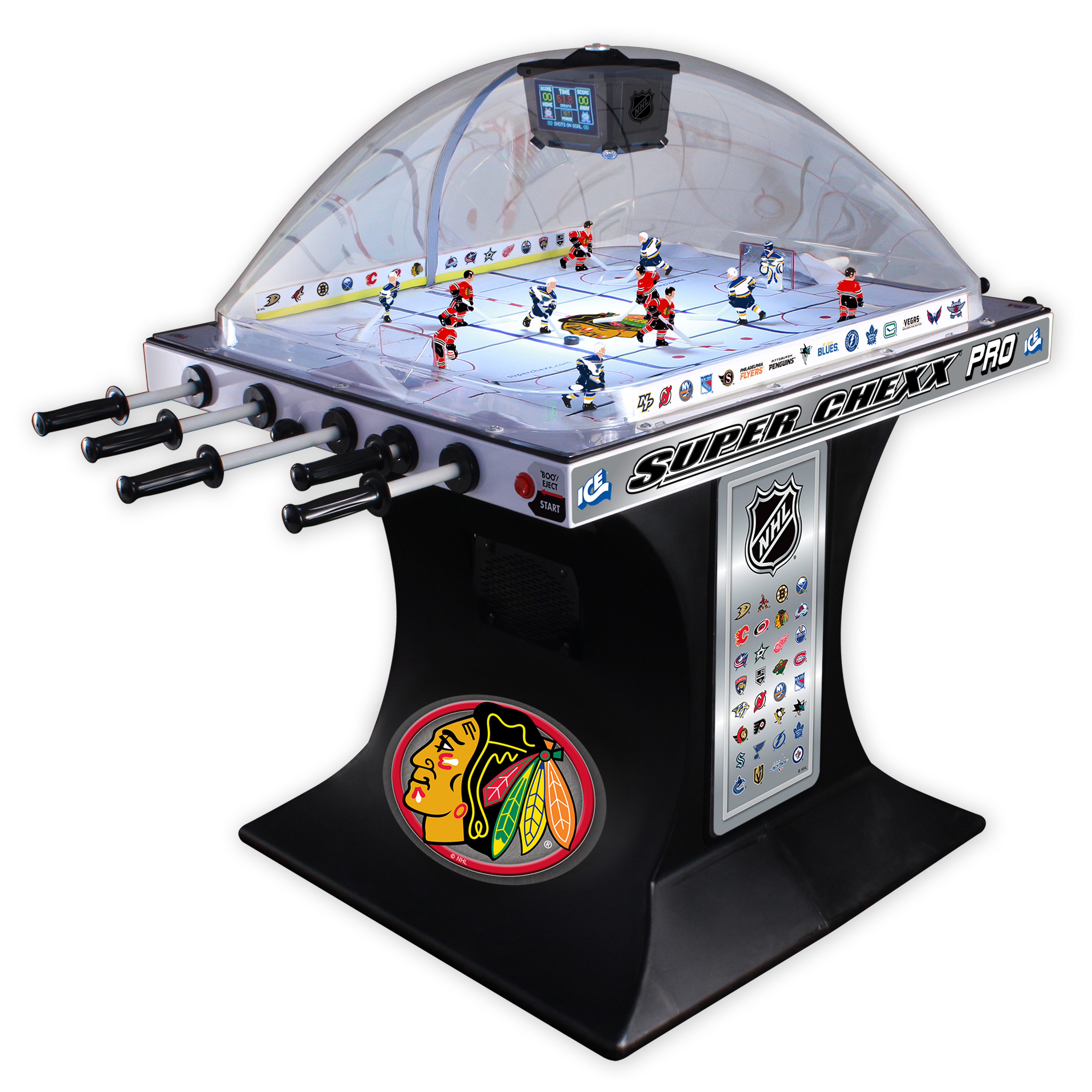 Choose from NHL®, USA Hockey and Hockey Canada Editions with 36 team jersey options to bring home the custom game you want to enjoy with family and friends. No other dome hockey brand offers the look and feel of a custom built Super Chexx.