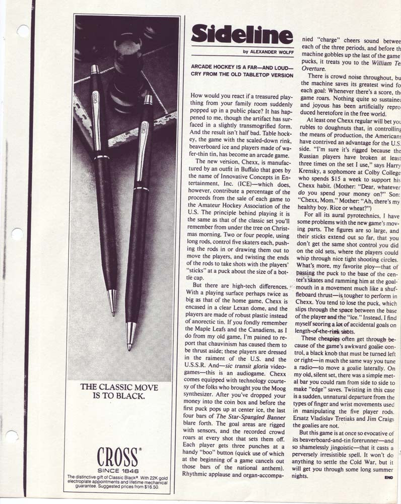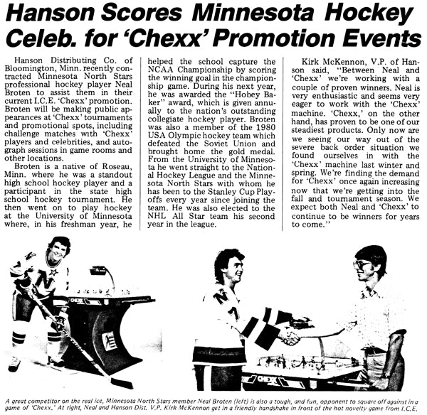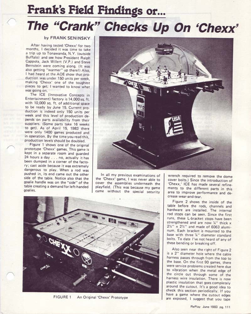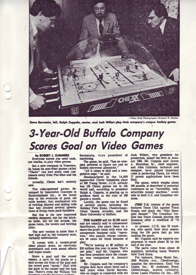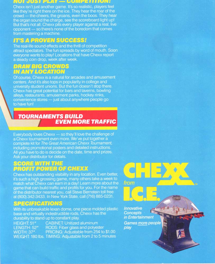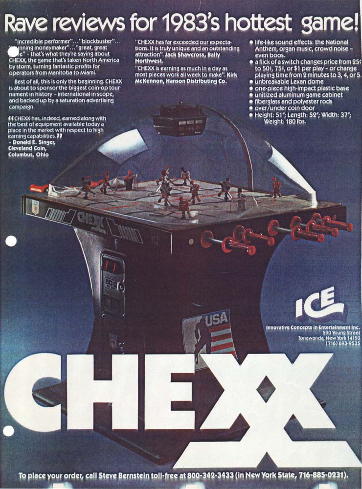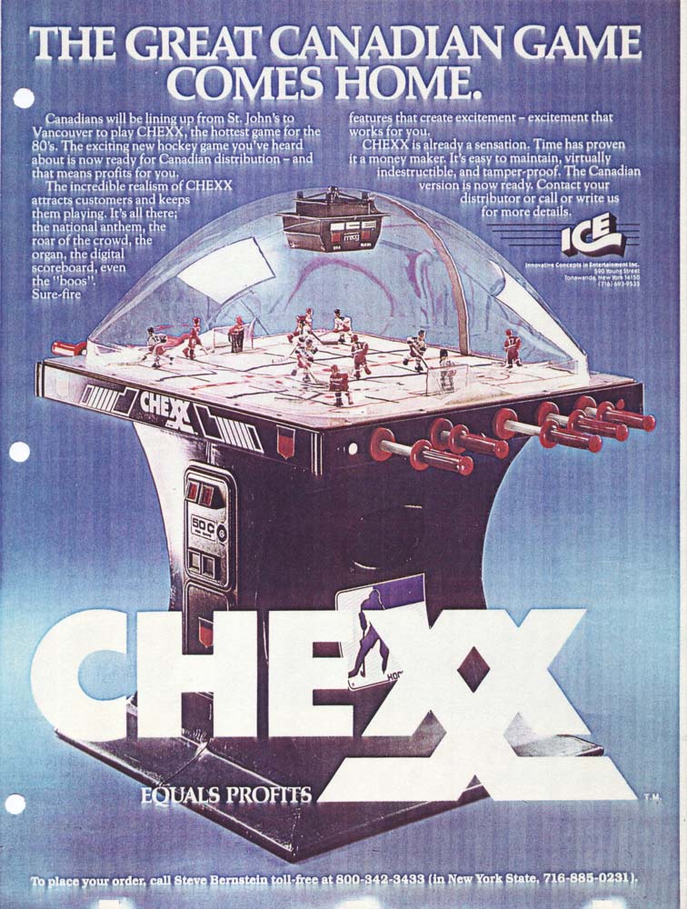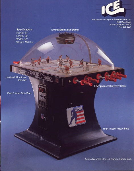 It all started a couple years after Team USA brought home the Olympic Hockey Gold Medal in the Miracle on Ice® at Lake Placid. Following that epic sports tale a small group of table hockey fanatics in Buffalo, NY designed and created the greatest competitive sports game of its time, CHEXX, the original USA vs USSR coin-operated bubble hockey (also known as dome hockey, table hockey, stick hockey or rod hockey). Since its 1982 introduction, few other games have transcended all of the changes over the decades following that "USA Miracle on ICE" and delivered more competition and fun among family and friends, adults and children. Check out the timeline on this page to see the evolution of this All-time arcade classic game in images dating back to 1982.